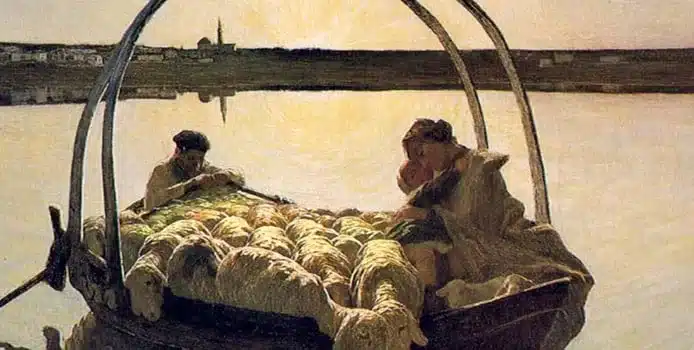Quando entrano in gioco i paesaggi la luce fa la differenza: distribuita da una mano sapientissima è parte fondamentale della tela, elemento integrante e imprescindibile delle rappresentazioni. Da non esperto ne sono rimasto molto colpito, affascinato e, in qualche occasione, incantato. In particolare, nel quadro Ave Maria a trasbordo mi ci sono perso, mai sazio dell’intimità di questa barchetta al largo, zeppa di pecore e di una coppia con figlio, immersi un una luce commovente.