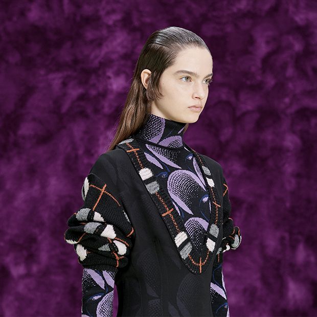 Le stampe, le paillettes e i guanti con mini clutch incorporata in pelle coloratissimi di Prada