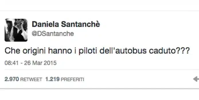 Cade un aereo e il primo pensiero della Santanchè è quello di capire quali siano le origini dei piloti. Allusione razzista? Ma noooo. Il fatto è che la nostra Daniela non è mica l’unica