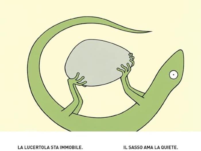 Lo consigliamo a… chi raccoglie sassi come souvenir, a chi non segue con lo sguardo le frettolose lucertole, a chi odia la primavera e cerca il ristoro dell’ombra, a chi va troppo veloce e si scorda di segnarsi in agenda “La lucertola e il sasso”.