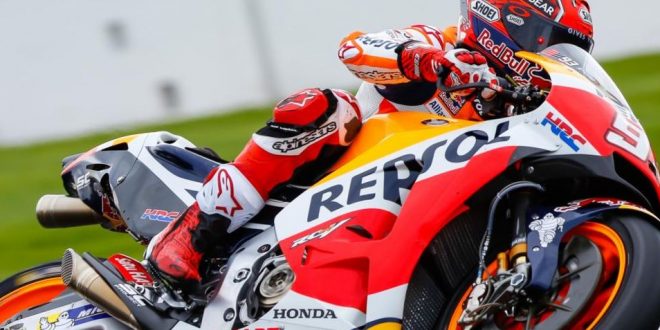 Marc Marquez imprendibile, Marc Marquez super per sei sabati dall’inizio di stagione, quattro di fila. Il campione del mondo in carica e portacolori Repsol Honda firma la pole position al GP di Gran Bretagna e si candidata alla vittoria della dodicesima gara stagionale. Bene Valentino Rossi (Movistar Yamaha MotoGP), secondo davanti a Cal Crutchlow (LCR Honda).Le condizioni della pista sono buone e un pallido sole scalda le secondo qualifiche della categoria regina. Accedono Dani Pedrosa (Repsol Honda) e Jonas Folger (Monster Yamaha Tech 3), ma la loro sessione non sarà ottima e chiuderanno come settimo e decimo.Da subito impressionate Marquez, che già al secondo passaggio mette a referto un tempo difficilmente avvicinabile chiudendo la Q2 con un 1:59.941s da record. Il primo e l’unico a scendere sotto i 2:00s. Ci provano Crutchlow e Maverick Viñales (Movistar Yamaha MotoGP™) ad impensierire il campione del mondo in carica ma senza intaccare il suo primato granitico. Chiuderanno come terzo, a 0,165s, e come quarto a 0,4. Solo Rossi si avvicina al talento di Cervera e, nel corso dell’ultimo passaggio utile, il nove volte iridato è addirittura meglio di Marquez nei primi tre intertempi. Valentino segna il secondo miglior crono della giornata pagando un ritardo di 0,084s. Jorge Lorenzo, già primo nella FP4, è la miglior Ducati e partirà al centro della seconda fila. Al suo fianco il compagno di box Andrea Dovizioso. La prima Aprilia è quella di Aleix Espargaro, autore del nono tempo dietro a Johann Zarco (Monster Yamaha Tech 3). Mentre Danilo Petrucci (Octo Pramac Racing) e Andrea Iannone (Suzuki Ecstar) si sono fermati in Q1 e inizieranno la gara inglese dalla quinta e sesta fila.