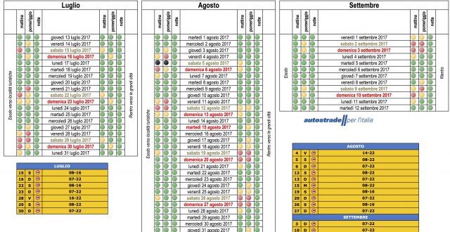 Traffico autostrade 2017: esodo estivo, info bollini rossi e neri