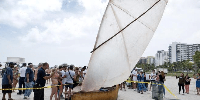 I sei sono scesi da una barca di legno lunga circa 5 metri , proveniente da Caibarien, sulla costa settentrionale di Cuba, e sono stati accolti da una folla di curiosi che scattavano foto e si congratulavano per il viaggio.