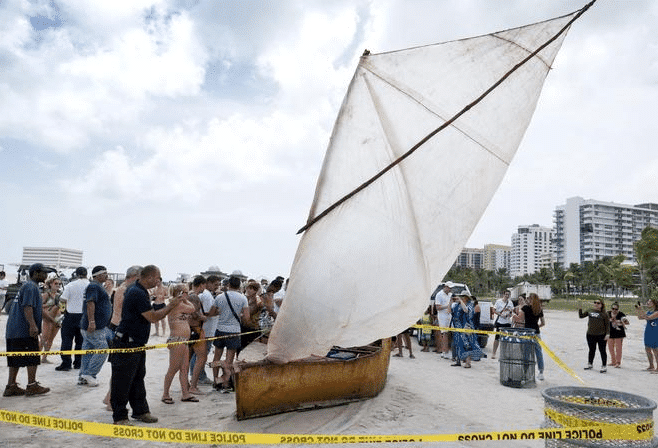 I sei sono scesi da una barca di legno lunga circa 5 metri , proveniente da Caibarien, sulla costa settentrionale di Cuba, e sono stati accolti da una folla di curiosi che scattavano foto e si congratulavano per il viaggio.