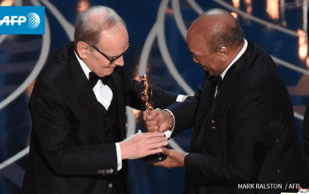“Dedico questa musica e questo Oscar a mia moglie Maria”. Con queste parole Ennio Morricone, con la voce rotta dall’emozione, ha concluso il suo discorso di ringraziamento all’Academy per il premio Oscar ricevuto per la colonna sonora in The Hateful Eight di Quentin Tarantino. “Grazie per il prestigioso riconoscimento – ha detto davanti alla platea del Dolby Teathre che gli ha riservato la standing ovation -, un pensiero va agli altri nominati, in particolare a John Williams. Non c’è una grande colonna sonora senza un grande ispiratore come Tarantino ed il suo team che ringrazio per avermi scelto”.