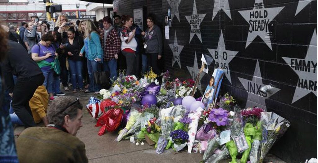 A Minneapolis, fuori dal club dove si svolsero la maggior parte delle riprese del film ‘Purple rain’, sono giunte decine di persone per omaggiare Prince. Migliaia di fiori e ricordi lasciati davanti alla porta del locale