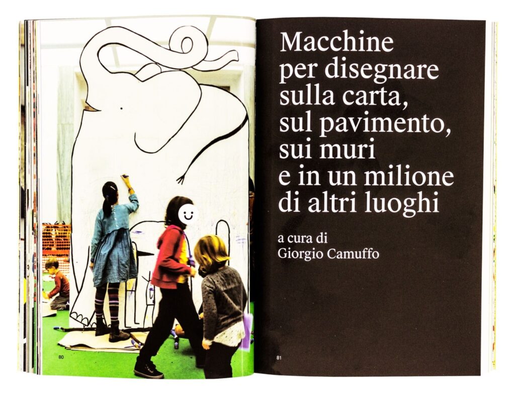 Le immagini sono accompagnate dai testi di approfondimento di Maddalena Dalla Mura, Emanuele Quinz, Raimonda Riccini, Alvise Mattozzi, Roberto Gigliotti, Kuno Prey, Carlo Tamanini, che da diversi punti di vista esplorano la relazione tra disegno, design e macchine, particolarmente rilevante in un momento, come oggi, in cui il rapporto tra design e infanzia è tornato in primo piano.
