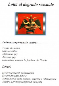 – Educazione sessuale in funzione del gender (mentre ispirata da uomini in gonnella senza esperienza sessuale… )