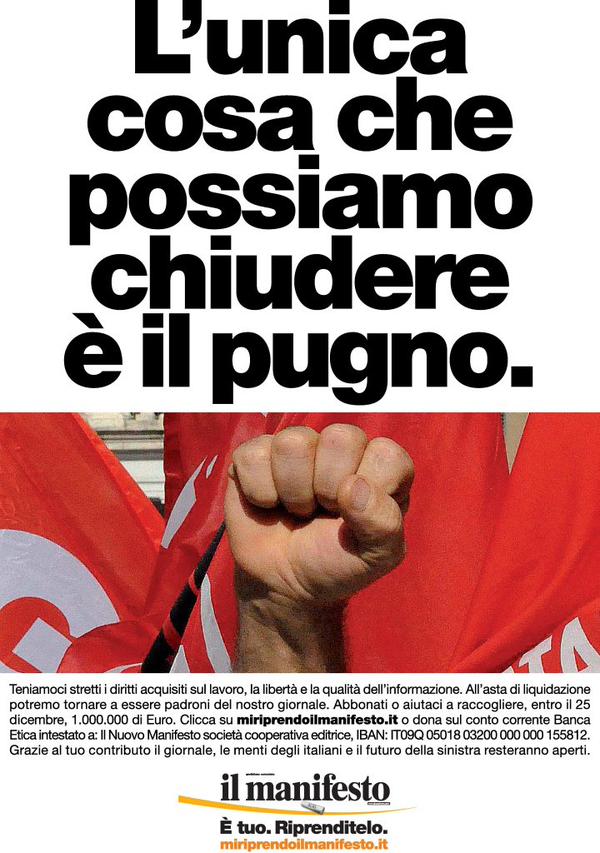 Se non l’avete già fatto e soprattutto se credete che in Italia sia fondamentale salvare la già bassa pluralità d’informazione, fate un salto in edicola e comprate l’edizione speciale de il Manifesto. Costa 20 euro, ma sono spesi bene. Anche se votate a destra