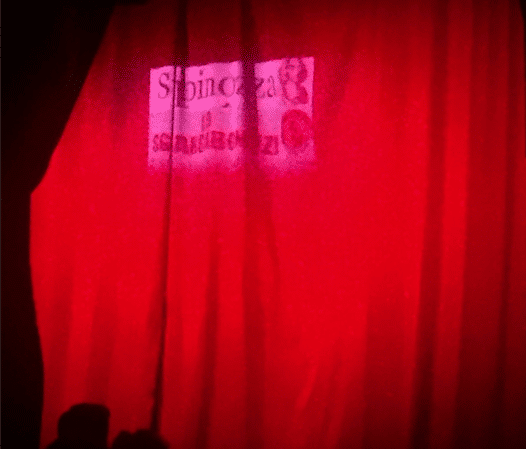 Ecco che le battute sono iniziate per bocca di Stefano Andreoli, uno dei curatori di Spinoza, intervallate da monologhi di vita stra-vissuta di Alessandro Gori, ovvero l’uomo Sgargabonzi.