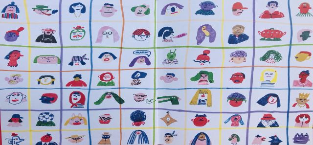 I risguardi del libro sono affollati da una catalogazione di tipi o di modi d’intendere i tipi che si osservano e con cui si interagisce: uomini dall’aspetto zoomorfo, animali dall’aspetto antropomorfo, l’impiegato con i baffi e la manta impiegata, il ragazzo con la maglia dei Verdena e l’alieno total green, quasi a ricordarci i brutti tiri che gioca l’incomprensione e che spesso porta, ad esempio, a pensare di aver a che fare non con la propria madre, ma con un broccolo che vuol farsi mangiare anche se ridotto in crema, oppure non con il proprio figlio, ma con un perfetto bifolco che non conosce le buone maniere e che si scorda di dire “la parolina magica” che nel gergo adulto corrisponde, in maniera inequivocabile (a loro avviso), a “grazie”.