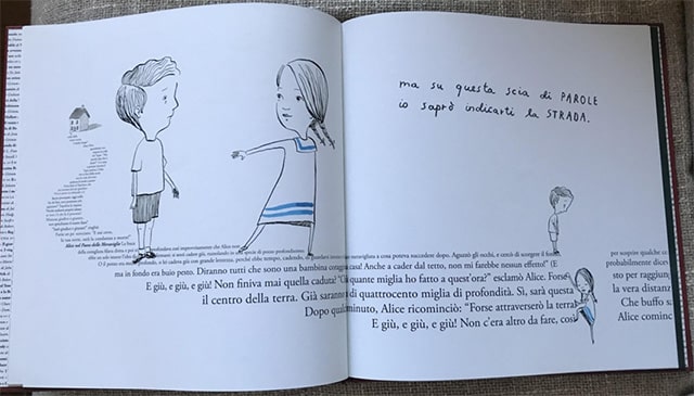 In ogni pagina vediamo la bambina dei libri passeggiare tra onde di fantasia e scie di parole, montagne immaginarie e foreste di fiabe. Ogni doppia pagina è curata nel minimo dettaglio, un tratto fine mostra quanto le storie siano ovunque: nei boschi percorsi dai passi di Cappuccetto Rosso e Hansel e Gretel, in avventure guidate da Peter e Wendy, nelle strade la cui meta è il paese delle meraviglie di Alice, in castelli abitati da principesse quali Raperonzolo, nelle morbide nuvole fatte di ninne nanne, per ricordarci come tutto il nostro vissuto sia guidato dalla brama di storie.