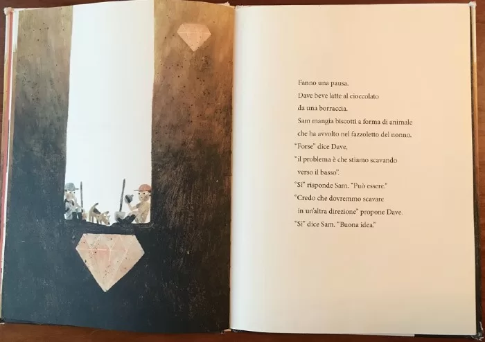 Sì insomma, per ogni buona avventura le provviste sono necessarie, ma soprattutto un amico speciale (o più) con cui fare una qualsiasi cosa che preveda della “spettacolarità”. Sam e Dave, i protagonisti del testo scritto da Mac Barnett e illustrato da Jon Klassen, edito da Terredimezzo nel 2015, ci portano a scoprire pagina dopo pagina cosa può avvenire dopo un lungo periodo a scavare.