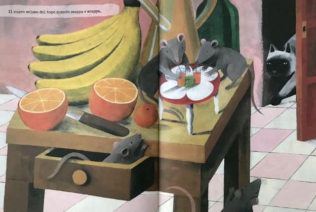 Il lettore, appena dopo, ne riprende le redini e lo attraversa anelando a una bellezza che viene solo fatta intendere dalle parole in poesia della Zoboli e dalle tavole a doppia pagina della Mulazzani: un gioco di tensioni tra l’immaginario e il libero pensare del lettore prende forma nel succedersi delle pagine.