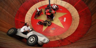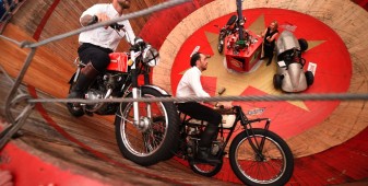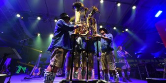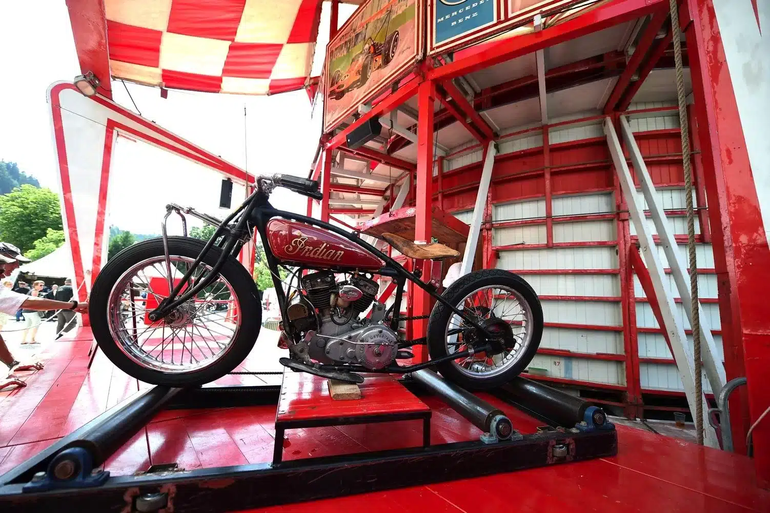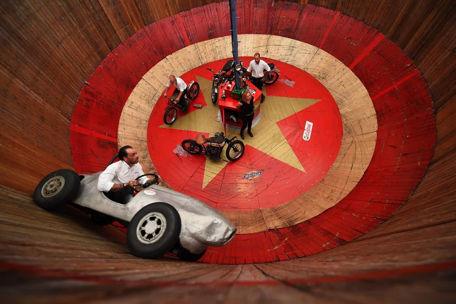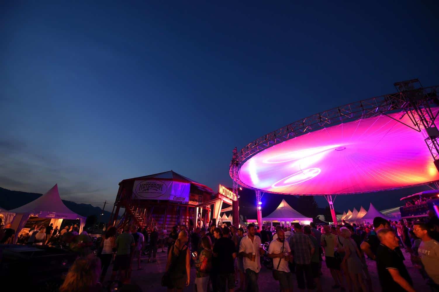La passione, leitmotiv di questi tre giorni, si è respirata un po’ ovunque: tra gli stand di accessoristica (Touratech e Wunderlich su tutti) con cataloghi grossi come Pagine Gialle e capaci di ribaltarti minuziosamente ogni singolo bullone della tua moto. La passione si è vista negli spettacoli stunt di Chris Pfeiffer o nei pazzi che giravano in perpendicolare sul muro della morte. La passione si percepiva tra la gente che affollava gli stand dei preparatori, tra cui gli italiani Moto su Misura e le Officine Sbrannetti, questi ultimi, a mio parere, meravigliosi interpreti della R nineT con la loro Spirit of Zeller. La passione soprattutto, la si è respirata nelle chiacchiere della gente, nei loro occhi avidi di novità e nella voglia di confrontarsi, condividere un amore e raccontarsi le proprie esperienze. Luogo principe di tutto questo contatto è stato senza dubbio il tendone, che io, alla terza pinta da un litro, ho soprannominato l’inferno sceso in terra. Del resto, come si può definire un luogo con migliaia di persone stipate sotto una soffocante copertura di plastica, che bevono ininterrottamente birra e mangiano stinco durante il weekend più caldo che Garmisch ricordi dai tempi del regno prussiano?