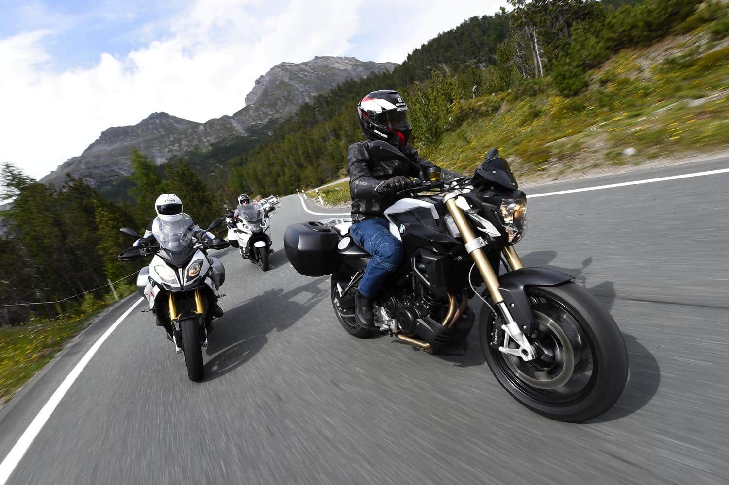 L’itinerario è stato studiato per evitare minuziosamente le autostrade e arrivare a Garmisch solo dopo aver fatto il pieno di curve e passi. Abbiamo dunque risalito il lago di Como, affrontato il Maloja, siamo passati per Saint Moritz e l’Engadina, fino ad attraversare il bellissimo toboga del Fernpass, ultima fatica prima dell’arrivo a Garmisch. Inutile dire che ci siamo divertiti. Inutile dire che nonostante l’apripista BMW fosse ligio alle regole, quando si poteva ci abbiamo dato del gran gas e che la S 1000 XR si è rivelata qualcosa di molto simile alla droga pesante, non solo per via del motore pastoso e infinito, ma soprattutto per il cambio elettronico, talmente bello da creare dipendenza. Di lei, in ogni caso, parlerò in un post a parte e torniamo ai BMW Days.