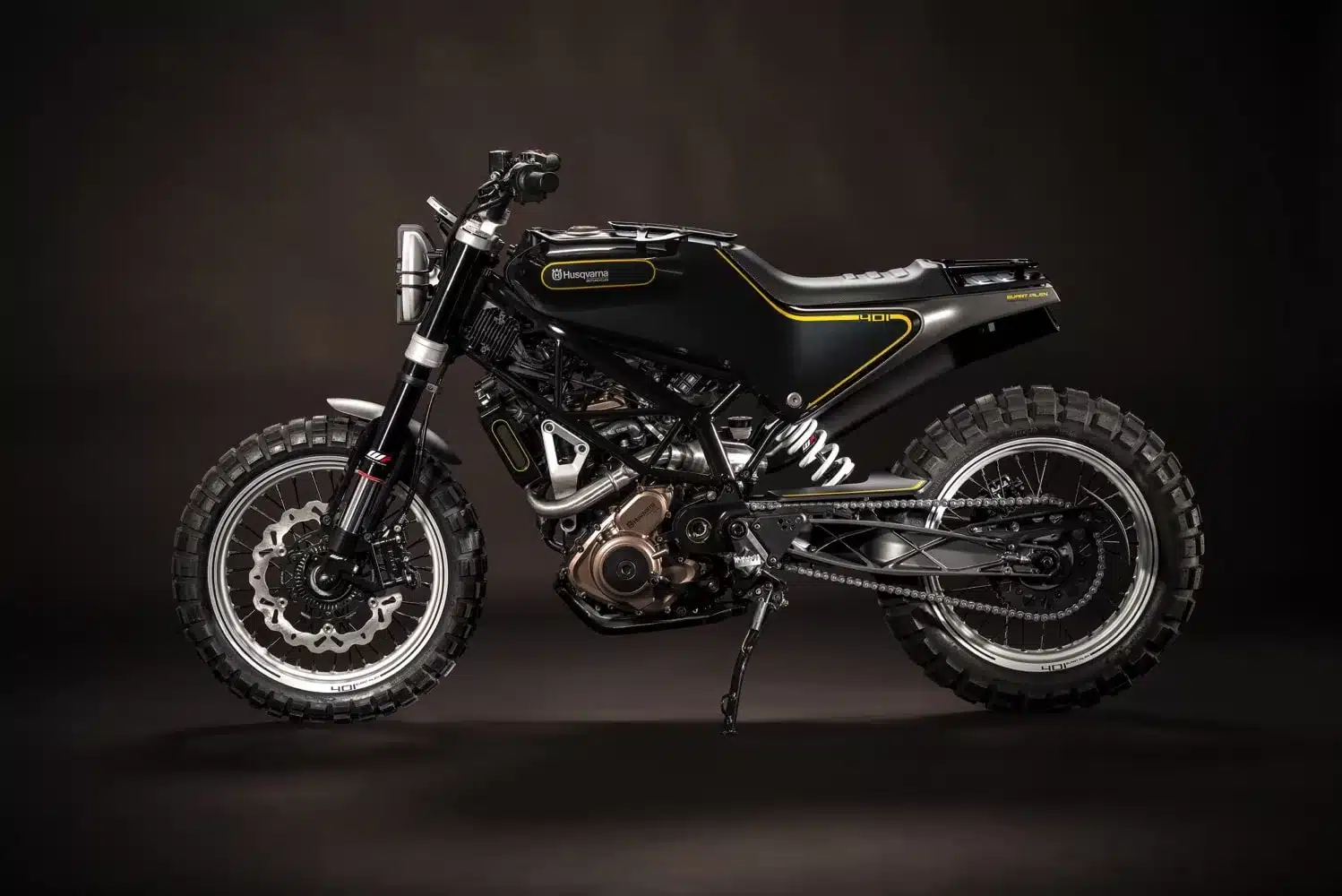 È vero, le ultime Husqvarna sono delle KTM rivestite. È vero, il fatto che il marchio non sia più italiano e, soprattutto, il fatto che l’acquisizione di KTM ha lasciato strascichi pesantissimi, ci sta un bel po’ sulle palle. Il nostro pensiero, prima di parlare di motorette, va agli ex dipendenti Husqvarna che, come tanti in questo periodo, sono rimasti a casa dall’oggi al domani. Non che al marchio sia andata meglio, almeno nei primi mesi di proprietà KTM, infatti, la sensazione che le moto Husky fossero solo delle KTM rivestite era evidente e il timore che da qui non ci smuovessimo più era decisamente palpabile. EICMA 2014, invece, dopo un primo concept svelato lo scorso anno, rappresenta per la casa un nuovo inizio e il merito va a due prototipi e un nuovo modello decisamente interessanti. Il primo, la 701 Supermoto è la riedizione di serie del Concept 701 presentato lo scorso anno, una mostravano con motore da 690 cm3 (ovviamente austriaco), targa, fanali e una bella dotazione racing. Gli altri due concept, invece, sono un tributo alle prime monocilindriche Husqvarna degli anni 40. Modelli dal nome “simil Ikea” tipo: Svartkvarna, Drombagen e Silverpilen. Oggi, Husqvarna rende omaggio a questi modelli presentando la 401 Vitpilen (freccia nera in svedese) e la 401 Svartpilen (freccia bianca, of course). La prima, compatta e agile, è realizzata artigianalmente per offrire uno stile minimalista e prestazioni di tutto rispetto; la concept si rifà alla Silverpilen, icona di Husqvarna realizzata nel 1953, per mano del progettista industriale svedese Sixten Sason. Della moto di allora la nuova 401 Vitpilen riprende con un design innovativo la semplicità funzionale (sovrastrutture ridotte all’osso), combinandola con la tecnologia moderna, il design all’avanguardia e i componenti di qualità. Alcune di queste ultime assolvono più funzioni, come nel caso delle staffe porta faro, al fine di ridurre il numero delle parti. Anche l’altro concept, la 401 Svartpilen (“Freccia nera” in svedese), è una stradale d’ispirazione “golden-age” che riprende il design delle motociclette storiche di Husqvarna. Priva di orpelli o decorazioni stravaganti, la 401 Svartpilen monta un compatto motore monocilindrico a quattro tempi racchiuso in una ciclistica rastremata. Il concept Husqvarna offre una posizione di guida più eretta, confortevole e naturale. Il manubrio in posizione verticale offre ampie leve di forza e il massimo controllo quando si poggiano le ruore sulla terra. Il faro a led è racchiuso in una gabbia integrata che lo protegge dagli urti. Lo scarico della 401 Svartpilen è alloggiato direttamente sotto la superficie laterale della sella, per lasciare più spazio libero alla ruota (utile in fuoristrada) e dare una migliore protezione. Un portapacchi posteriore integrato nella sella offre spazio per i bagagli e gli attrezzi. Inoltre, il portapacchi multiuso da serbatoio non solo protegge lo stesso da piccoli urti, ma fornisce anche un semplice supporto per il trasporto di mappe e borse. Infine, tra le altre dotazioni fuoristradistiche della Svartpilen, troviamo le pedane offroad e il paramotore che protegge i carter motore da rocce e sassi.