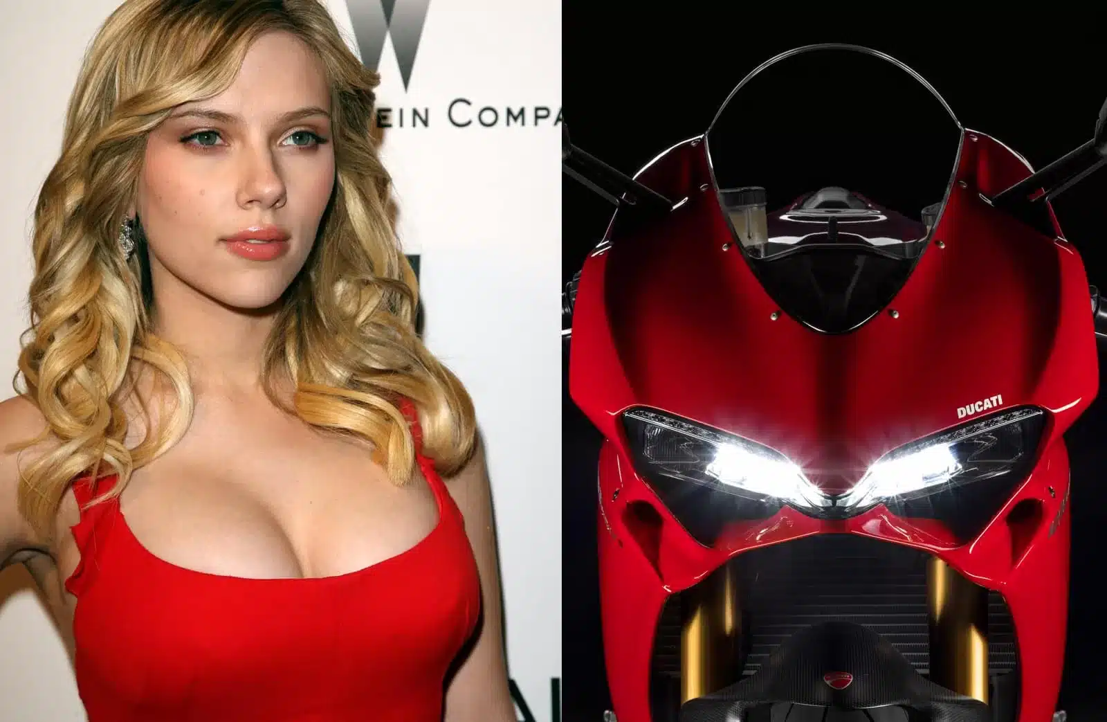 Ducati 1299 Panigale – Ho scelto Scarlett Johansson perché è l’unica che ho trovato immortalata con un vestito rosso. Ma avrei potuto benissimo dire Angelina Jolie, Cameron Diaz, Megan Fox, Jessica Alba, Rosario Dawson, insomma, tutte le bellissime che vi vengono in mente. Il motivo è molto semplice: la Ducati Panigale è bella, talmente bella che ci si perderebbe a guardarla. E oltretutto sarebbe pure un peccato fermarsi lì, perché oltre a essere un gioiello estetico è anche spettacolare dal punto di vista della scheda tecnica. Il dato principe sono i 205 CV, ottenuti aumentando la cilindrata a 1299 cm3, per 166,5 kg di peso a secco (179 in ordine di marcia). Un dato da sturbo, se si pensa che il fatidico rapporto 1:1 qui, non viene solo raggiunto, ma frantumato. Per la scheda tecnica completa, cliccate qui.