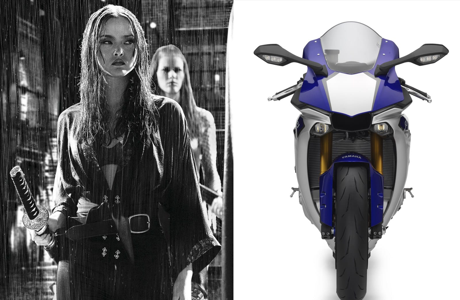 Yamaha R1 – L’abbiamo attesa per 5 anni e ora, finalmente, la nuova R1 è realtà. Io avevo 18 anni quando la prima R1 (era il 1998) ridefinì i confini delle sportive e questa nuova R1 sembra avere tutte le carte in regola per infilarsi in quel solco. Dal punto di vista tecnico la moto non si discute, 200 CV e componentistica (anche se non griffata) assolutamente di pregio. Anche dal punto di vista estetico la nuova moto di Iwata ha portato qualcosa di nuovo: i due faretti praticamente nascosti sotto al cupolino hanno consentito un design più pulito e una somiglianza marcata con la M1 di Rossi e Lorenzo. Su questo punto, però, io non faccio parte di quella folta schiera di entusiasti. L’idea di per sé è intelligente ma per quanto riguarda il mio gusto estetico, poco azzeccata. Forse è solo questione di abitudine ma quegli occhietti tondi e bassi mi portano alla mente i faretti aggiuntivi delle varie crossover in commercio (tipo la Transalp, per intenderci). Detto ciò, dire che la nuova R1 non mi piace sarebbe una forzatura. Per questo l’ho associata alla “piccola e letale Miho”, prostituta samurai di Sin City (al secolo Devon Aoki). Viso particolare, armi affilate, efficacia assoluta. Per la scheda tecnica completa cliccate qui.