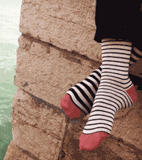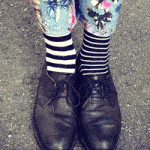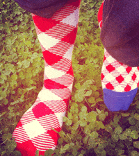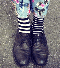Hanno pensato a fantasie o lavorazioni simili, ma distribuite in modo diverso sulle calze, così da creare l’effetto spaiato che accade inevitabilmente nel buio delle lavatrici di mezzo mondo, solo che qui è studiato stilisticamente.