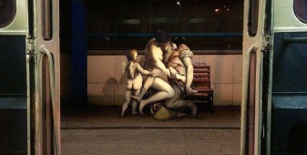 Intenti a fare quello per cui sono nati, in un vagone della metropolitana, semi illuminato da una contemporanea e volgare luce al neon.
