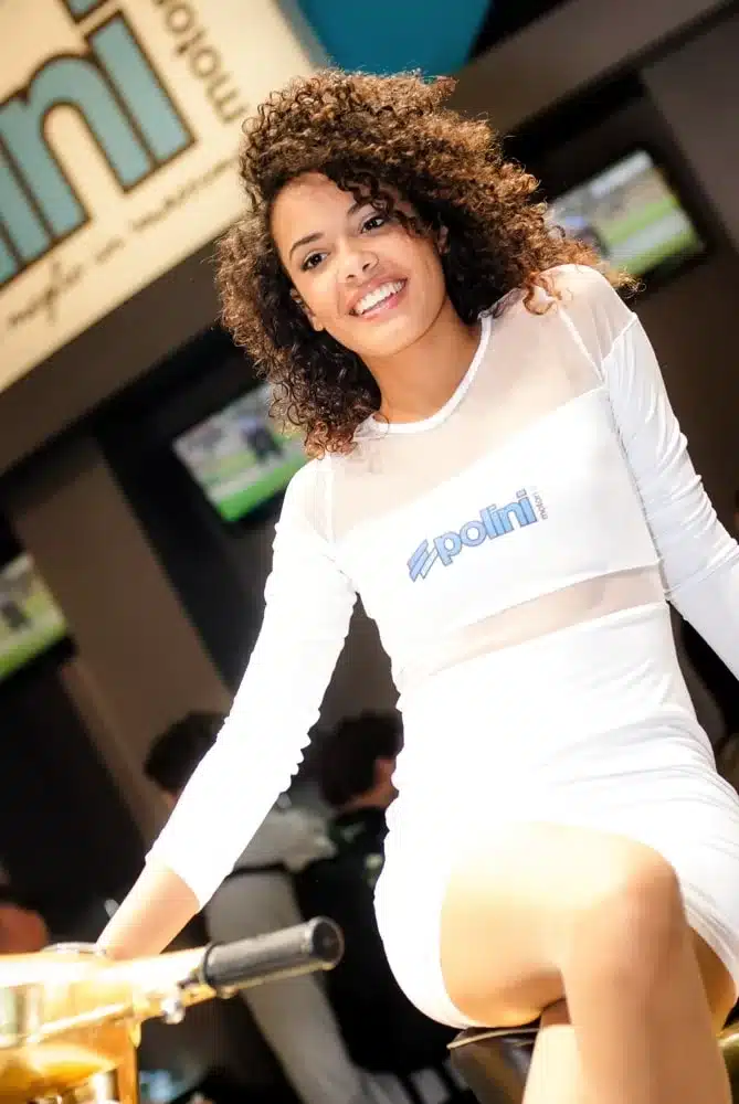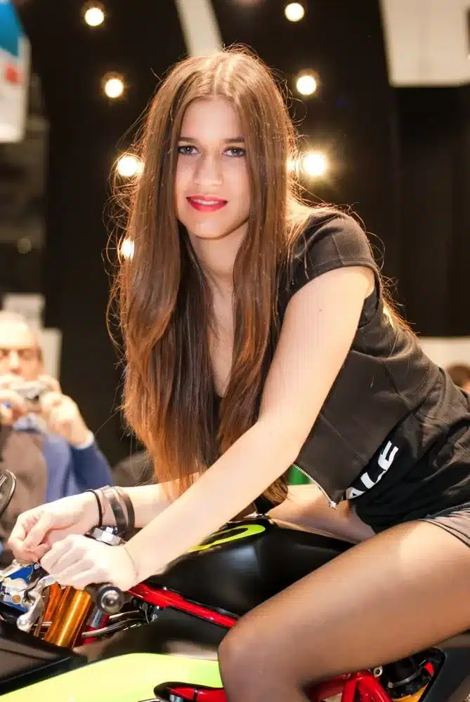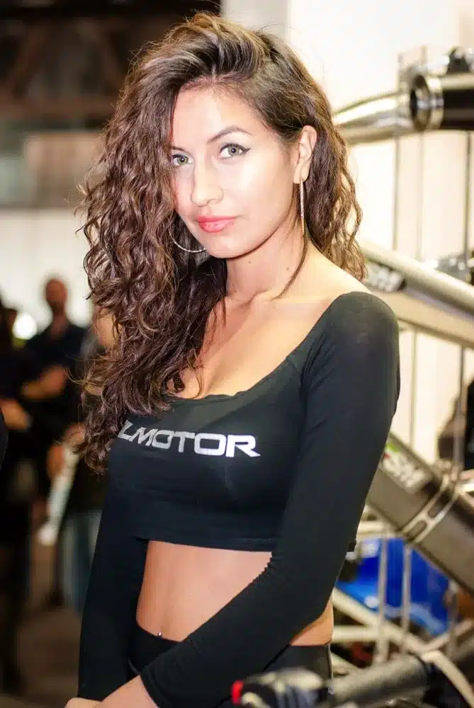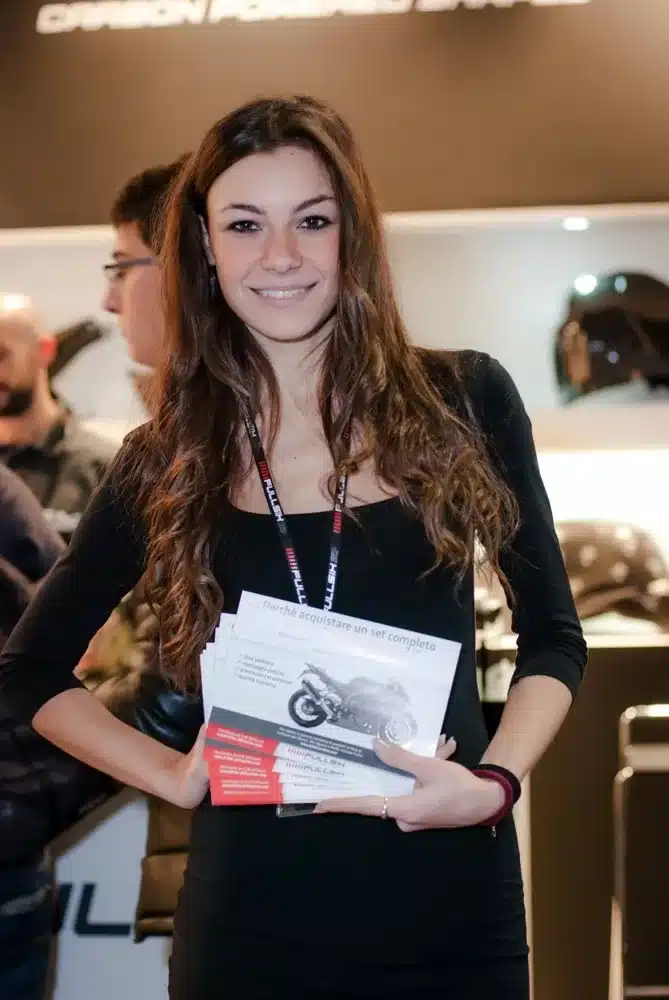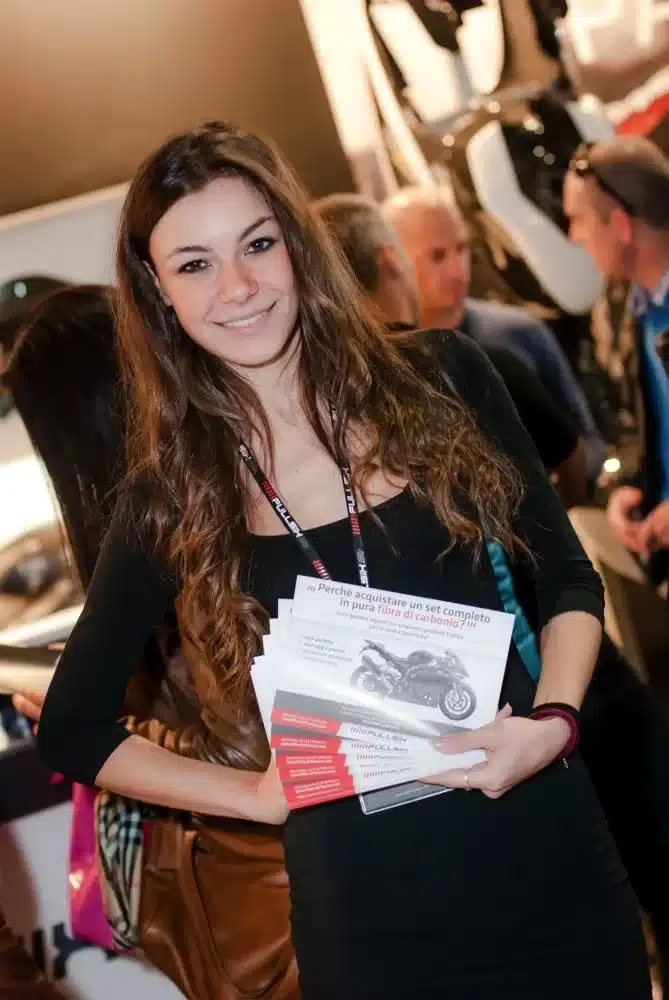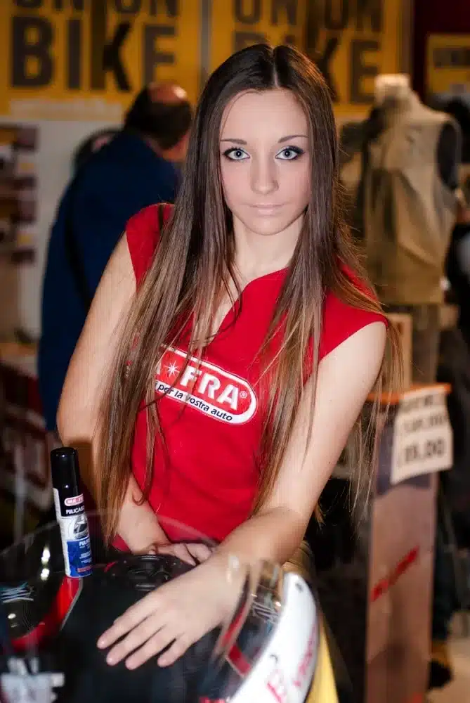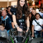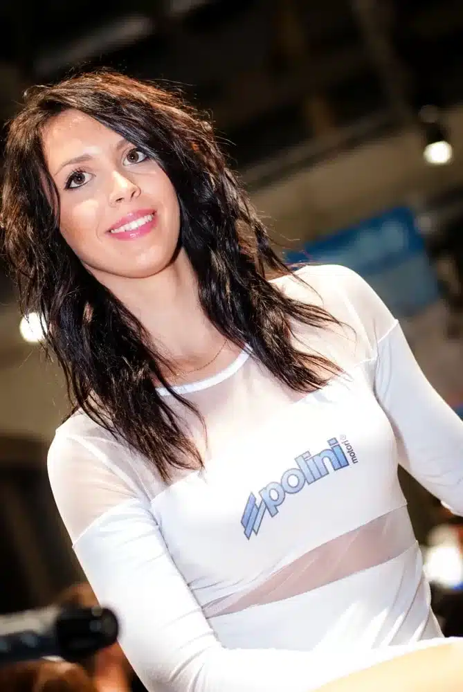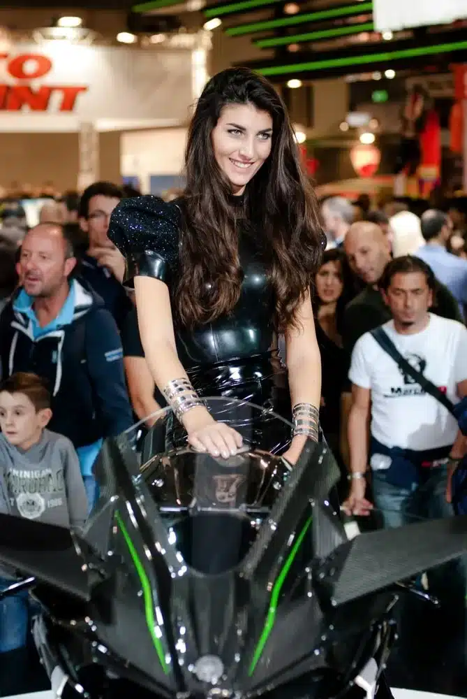 Terzo: dice che si possono conoscere tante belle ragazze. Ma quando mai? Io sono 10 anni che frequento EICMA da addetto ai lavori e, anche per questo motivo, ho avuto la fortuna – se di fortuna si può parlare – di poter interagire con alcune di queste fantomatiche “stand girls”. Ebbene, fatemi sfatare il mito: queste povere criste, fidatevi, vi sorridono solo perché sono pagate. Vi guardano solo perché sono pagate. Fanno foto con voi, indovinate un po’, solo perché sono pagate. Se anche solo lontanamente pensate che una valchiria di origini lettoni possa bramare l’accoppiamento con un soggetto che come minimo è lungo la metà di lei e che, come massima romantica, sa sgrufolare soltanto un: “aho, compà, fammi la foto con la strappona”, beh, siete un filo fuori strada (e forse avete visto troppi film con Ron Jeremy). La verità è che stare sotto dei faretti a 50 gradi per un’intera giornata è stressante, stare in sella a una moto che gira su una pedana per un’intera giornata è stressante, dare retta a persone che ti trattano con il fare del selezionatore di bestiame è stressante (e pure un po’ svalutante). Perciò, invece di sperare in amori interraziali nati sotto l’onda di vetro progettata da Renzo Piano, oppure in flirt tutto-sesso consumati tra un padiglione e l’altro, datemi retta, fate come il nostro Marcello Fierro, bravissimo autore della gallery qui sotto: limitatevi a sognare e ad ammirarle, è molto, ma molto meglio.