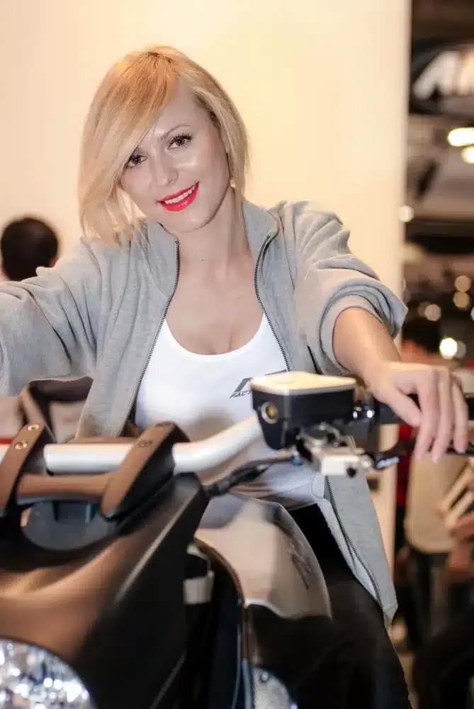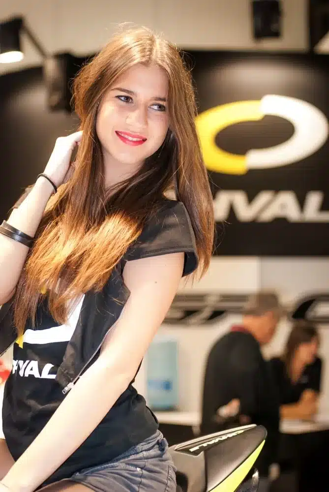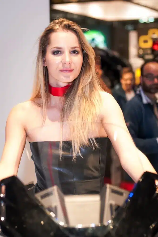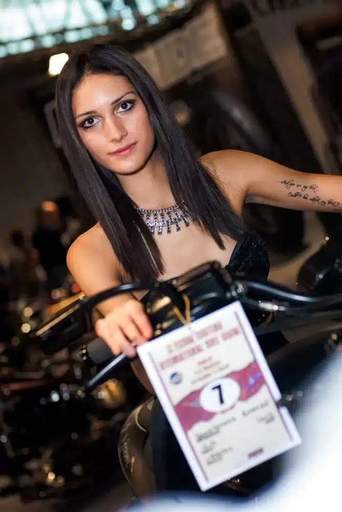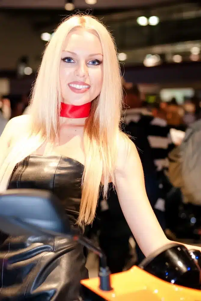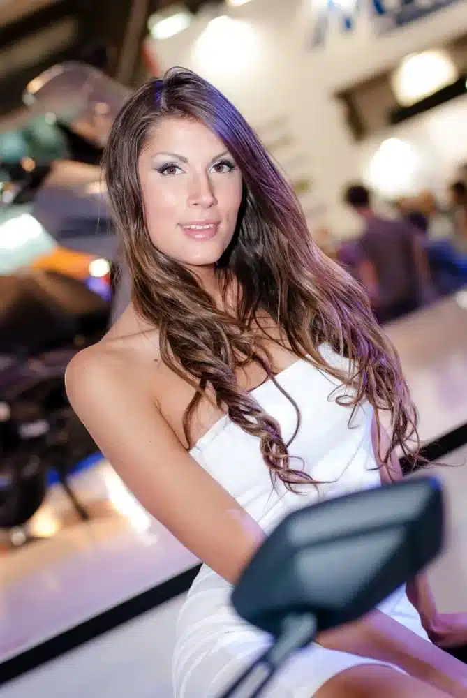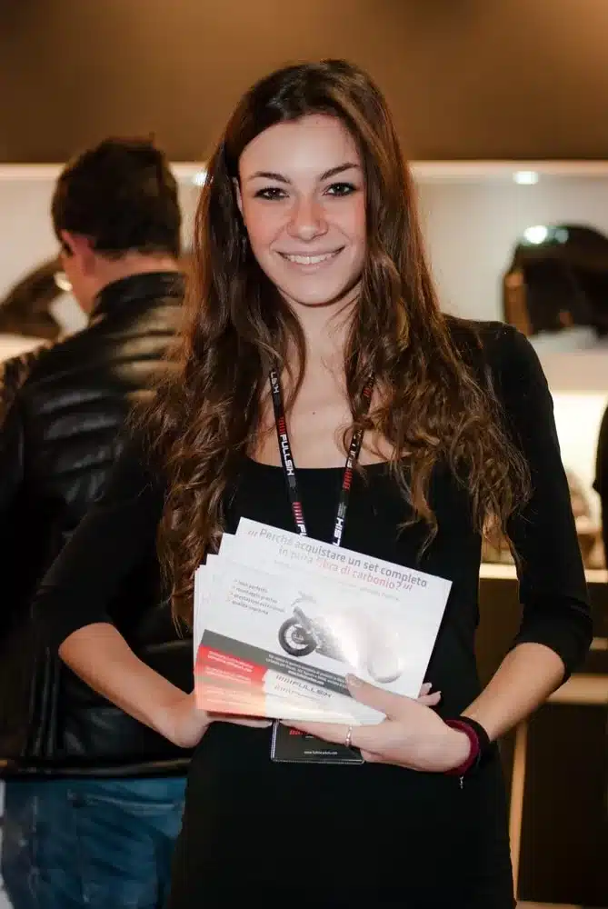 Terzo: dice che si possono conoscere tante belle ragazze. Ma quando mai? Io sono 10 anni che frequento EICMA da addetto ai lavori e, anche per questo motivo, ho avuto la fortuna – se di fortuna si può parlare – di poter interagire con alcune di queste fantomatiche “stand girls”. Ebbene, fatemi sfatare il mito: queste povere criste, fidatevi, vi sorridono solo perché sono pagate. Vi guardano solo perché sono pagate. Fanno foto con voi, indovinate un po’, solo perché sono pagate. Se anche solo lontanamente pensate che una valchiria di origini lettoni possa bramare l’accoppiamento con un soggetto che come minimo è lungo la metà di lei e che, come massima romantica, sa sgrufolare soltanto un: “aho, compà, fammi la foto con la strappona”, beh, siete un filo fuori strada (e forse avete visto troppi film con Ron Jeremy). La verità è che stare sotto dei faretti a 50 gradi per un’intera giornata è stressante, stare in sella a una moto che gira su una pedana per un’intera giornata è stressante, dare retta a persone che ti trattano con il fare del selezionatore di bestiame è stressante (e pure un po’ svalutante). Perciò, invece di sperare in amori interraziali nati sotto l’onda di vetro progettata da Renzo Piano, oppure in flirt tutto-sesso consumati tra un padiglione e l’altro, datemi retta, fate come il nostro Marcello Fierro, bravissimo autore della gallery qui sotto: limitatevi a sognare e ad ammirarle, è molto, ma molto meglio.
