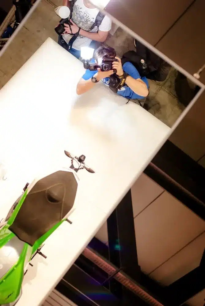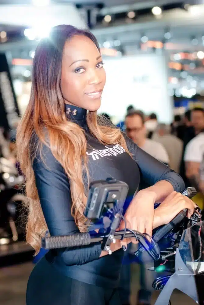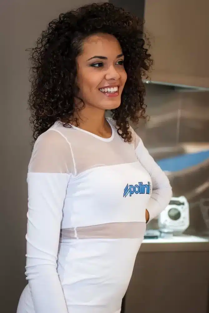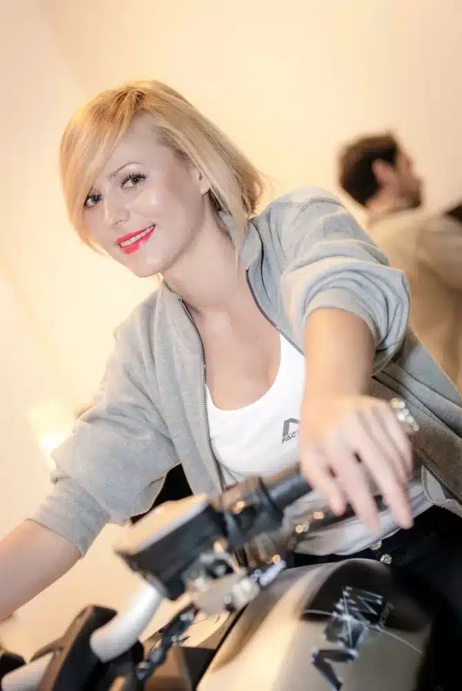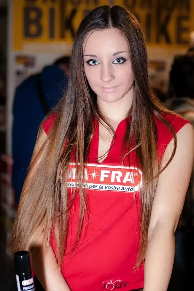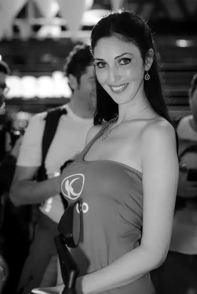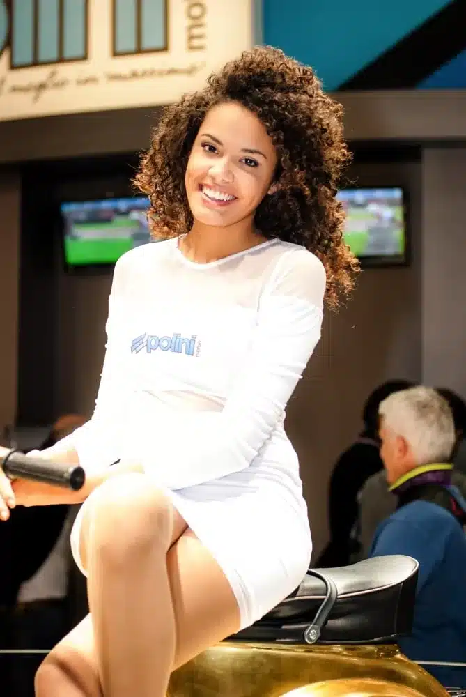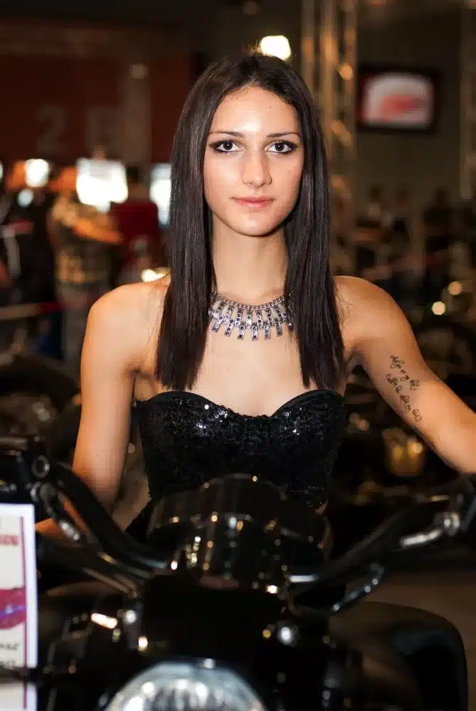 Terzo: dice che si possono conoscere tante belle ragazze. Ma quando mai? Io sono 10 anni che frequento EICMA da addetto ai lavori e, anche per questo motivo, ho avuto la fortuna – se di fortuna si può parlare – di poter interagire con alcune di queste fantomatiche “stand girls”. Ebbene, fatemi sfatare il mito: queste povere criste, fidatevi, vi sorridono solo perché sono pagate. Vi guardano solo perché sono pagate. Fanno foto con voi, indovinate un po’, solo perché sono pagate. Se anche solo lontanamente pensate che una valchiria di origini lettoni possa bramare l’accoppiamento con un soggetto che come minimo è lungo la metà di lei e che, come massima romantica, sa sgrufolare soltanto un: “aho, compà, fammi la foto con la strappona”, beh, siete un filo fuori strada (e forse avete visto troppi film con Ron Jeremy). La verità è che stare sotto dei faretti a 50 gradi per un’intera giornata è stressante, stare in sella a una moto che gira su una pedana per un’intera giornata è stressante, dare retta a persone che ti trattano con il fare del selezionatore di bestiame è stressante (e pure un po’ svalutante). Perciò, invece di sperare in amori interraziali nati sotto l’onda di vetro progettata da Renzo Piano, oppure in flirt tutto-sesso consumati tra un padiglione e l’altro, datemi retta, fate come il nostro Marcello Fierro, bravissimo autore della gallery qui sotto: limitatevi a sognare e ad ammirarle, è molto, ma molto meglio.