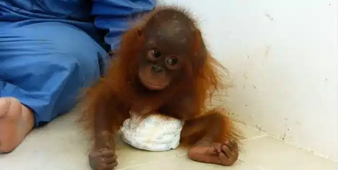 Baby orango separato dalla mamma non smette di abbracciarsi