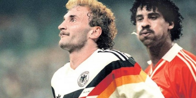 Ecco un bel pezzo scritto dalla redazione di Valderrama.it (sito che consigliamo in toto, se amate il calcio e se amate di più i calzettoni abbassati di Baggio piuttosto che la faccia da chiulo di Ronaldo), che prova a entrare nel rapporto tra due calciatori “enormi” che pagarono lo scotto di rappresentare due nazioni per anni ferocemente rivali. Niente di tutto ciò che è scritto qui sotto passò per la testa di Rijkaard, tantomeno in quella di Voeller, però è bello pensare il contrario.