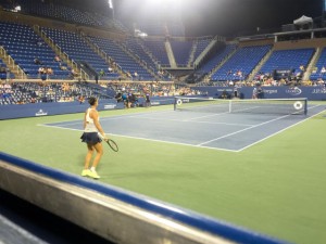 Fino ad ora ho insistito di quanto siamo stati vicini ai giocatori, ma francamente questo è troppo, siamo così avanti che più avanti non si può. Con il cervello infantile in subbuglio, ci sediamo per osservare Flavia Pennetta sfidata da Monica Niculescu. Il match è piacevole poiché gli scambi sono prolungati ed essendo il nostro ultimo incontro vorremmo non finisse troppo presto. I tagli che la rumena produce col dritto sono davvero fastidiosi, da qui posso rendermene palesemente conto. Ma Flavia è solida, ha un rovescio straordinario, efficace e naturale, il dritto ha tutt’altra costruzione senza però risultare un inevitabile tallone d’Achille.