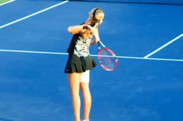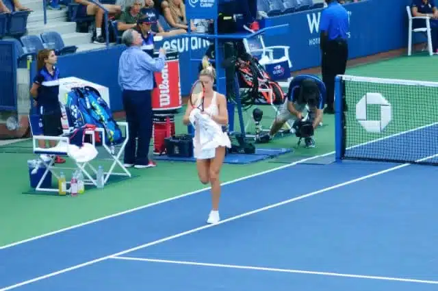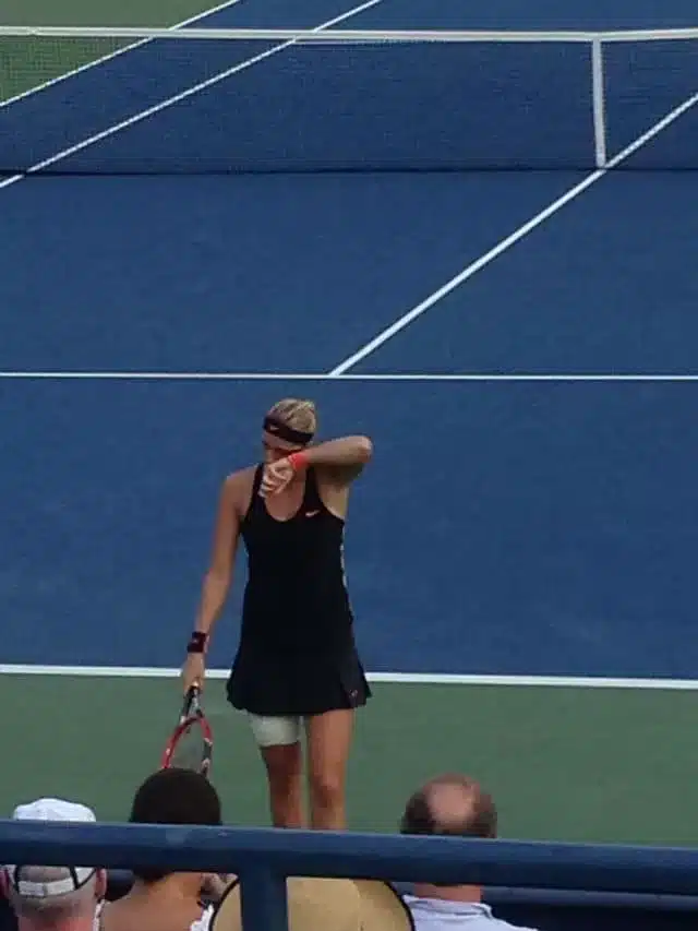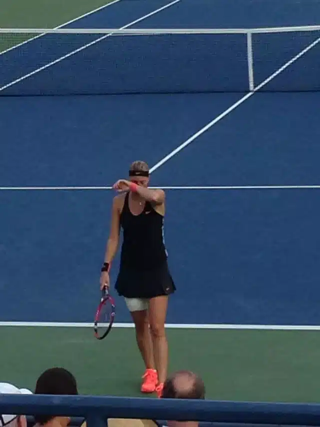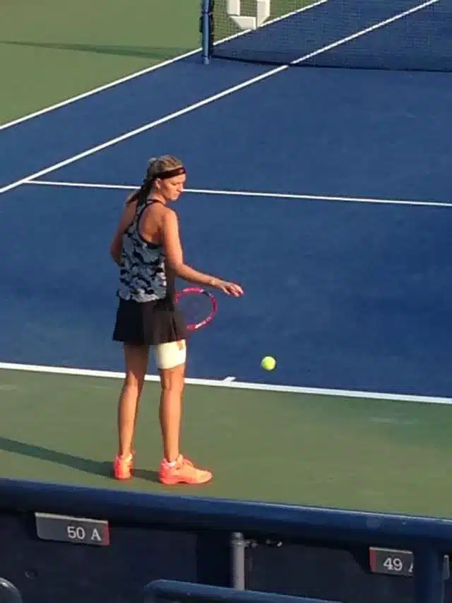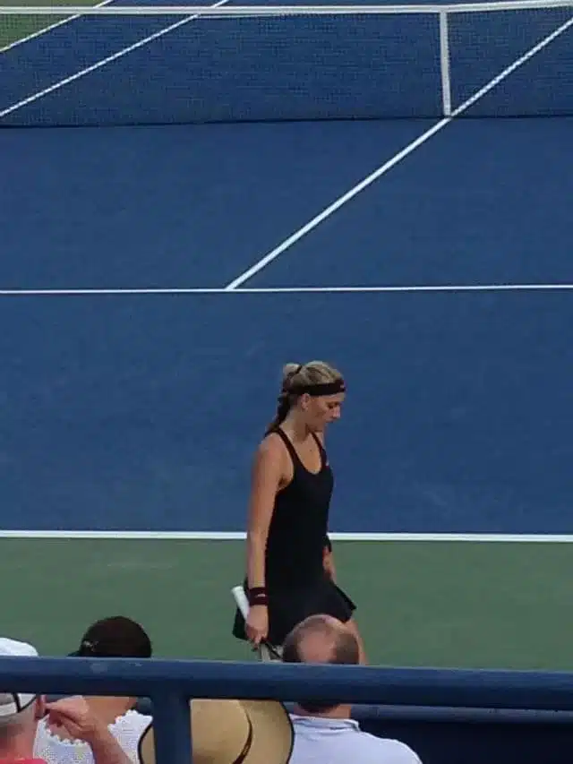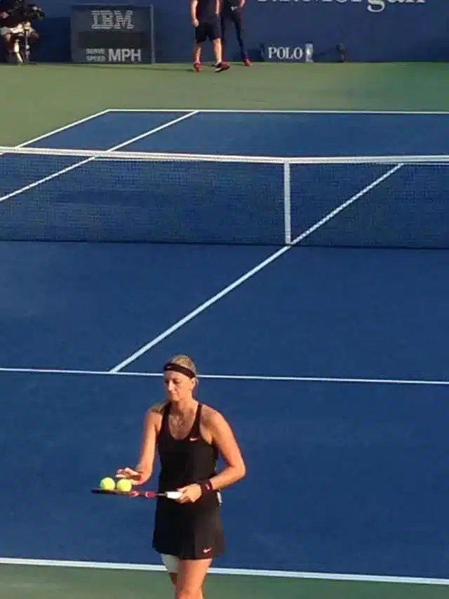 Con i nostri sentimenti contrastanti ci ricatapultiamo sul Louis Armstrong, di scena Petra Kvitova contro la statunitense Nicole Gibbs. Sorvolando sul blando tifo del pubblico, il caldo ha ormai mollato la presa più aspra ed mi restituisce la lucidità per illuminarmi di nuova vitalità. Petra non è certo una sorpresa, ne ho viste di partite che l’hanno coinvolta e i due Wimbledon vinti parlano per lei. Le appartiene un tennis d’attacco, una condizione fisica labile e una forza mentale spesso in libera uscita.