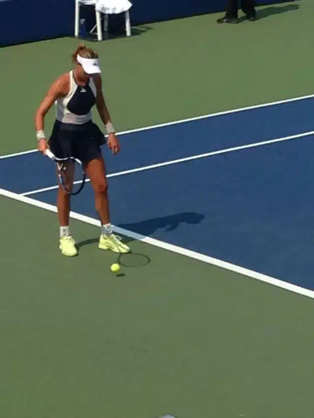 Prima di passare oltre però vorrei accennare alla passione maturata in ninja per Johanna. Posso comprendere la sua ammirazione per la prestazione di cuore, anche per il gioco alla fin fine a suo modo intrigante che ci ha fatto vedere. Ma lo squilibrato è stato rapito più di tutto dai tic al servizio della ragazza. Konta vanta una preparazione del colpo tutta sua: palleggio di palla molto alto, rotazione della racchetta nella mano destra ad ogni rimbalzo e rotazione della pallina nella mano sinistra ad ogni presa. Raramente ho potuto ammirare gesti tanto meccanici e goffi, eppure ninja se n’è innamorato: dicono l’amore sia cieco, ho avuto la dimostrazione invece che ci vede di sbieco.