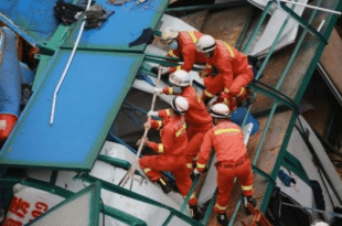 Almeno 18 persone sono state uccise da una gru crollata in forti venti nella provincia di Guangdong in Cina.