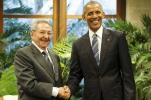 Il presidente Barack Obama e il presidente cubano Raul Castro si sono stretti la mano a nel Palazzo della Rivoluzione a L’Avana prima del loro incontro bilaterale, un momento notevole per due paesi che lavorano per mettere dietro di loro l’amarezza della loro inimicizia e della Guerra Fredda.